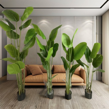 Venta caliente nuevo pájaro verde artificial del paraíso árbol viajero plátano en maceta planta de boda de plástico