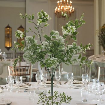 Arbustos verdes artificiales elegantes-boj y flores blancas para ramo de novia, arco de boda, decoración de hotel y fiesta